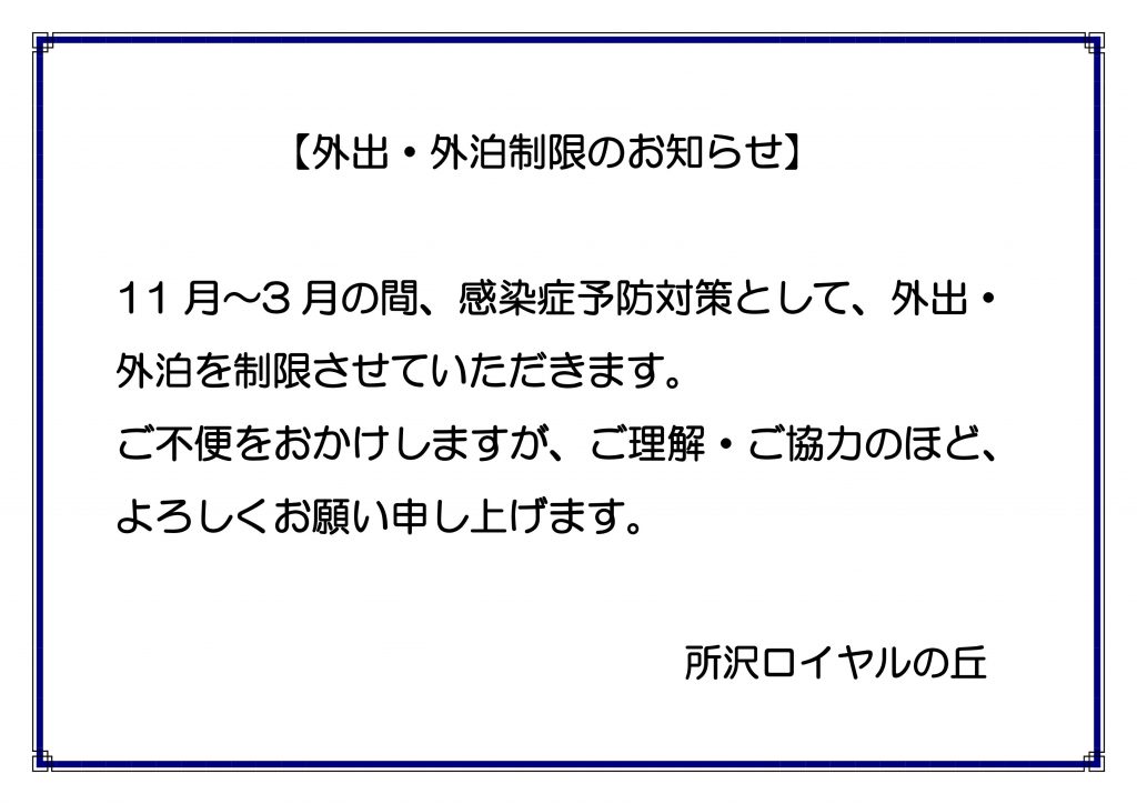 外出・外泊制限のお知らせ