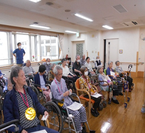 介護老人保健施設での行事の中でも重要な行事として位置づけ、少し緊張感がある中で厳かに行いました。
