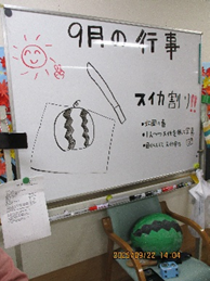 少し季節は過ぎましたが、9月22日(月)に2階の行事「スイカ割り」を行ないました🍉